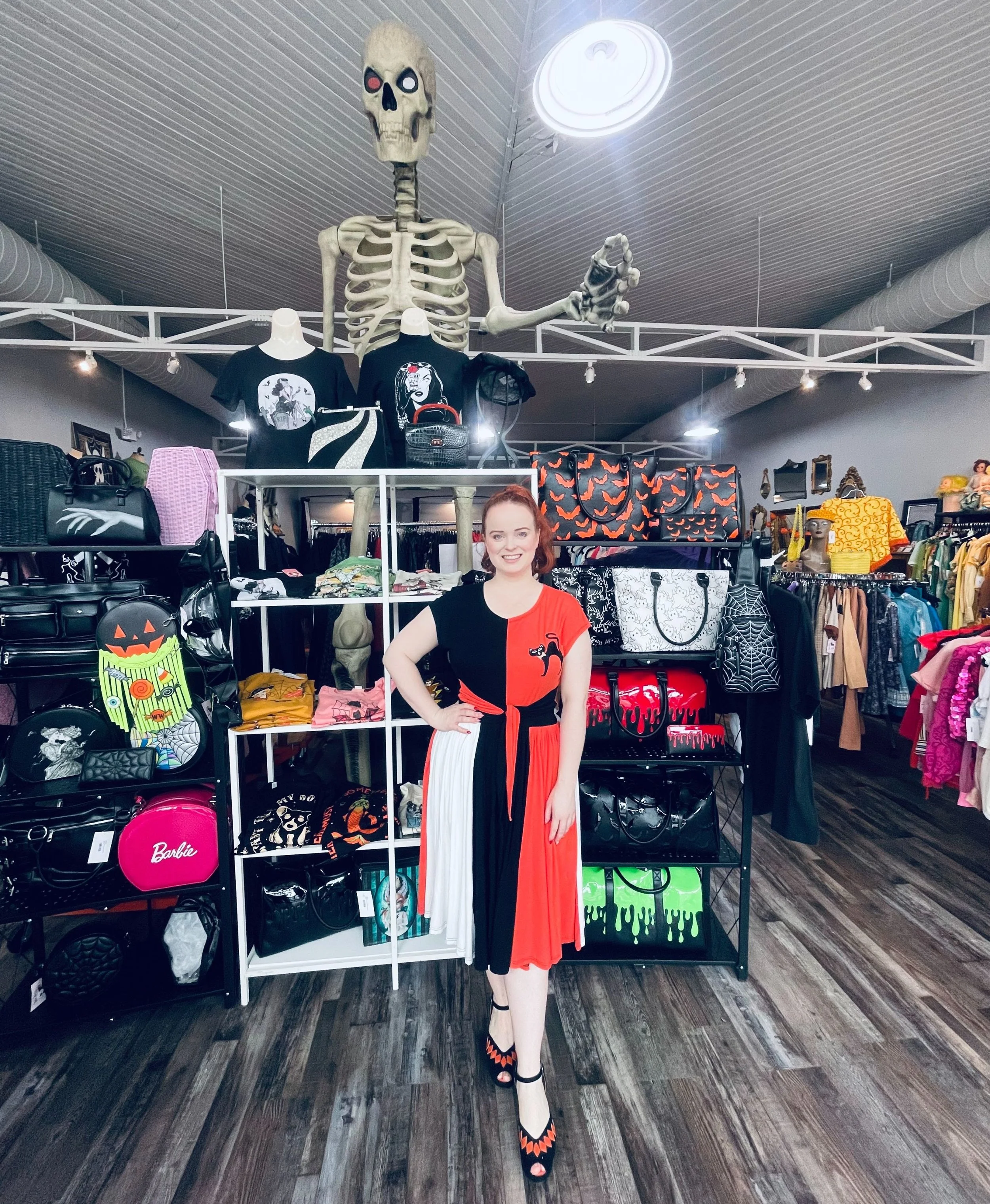 For non-vintage, she works exclusively with small businesses as suppliers and loves making connections with other small biz owners. With goth pieces, she is often the maker’s first retail store—and almost always their first in Arkansas!
